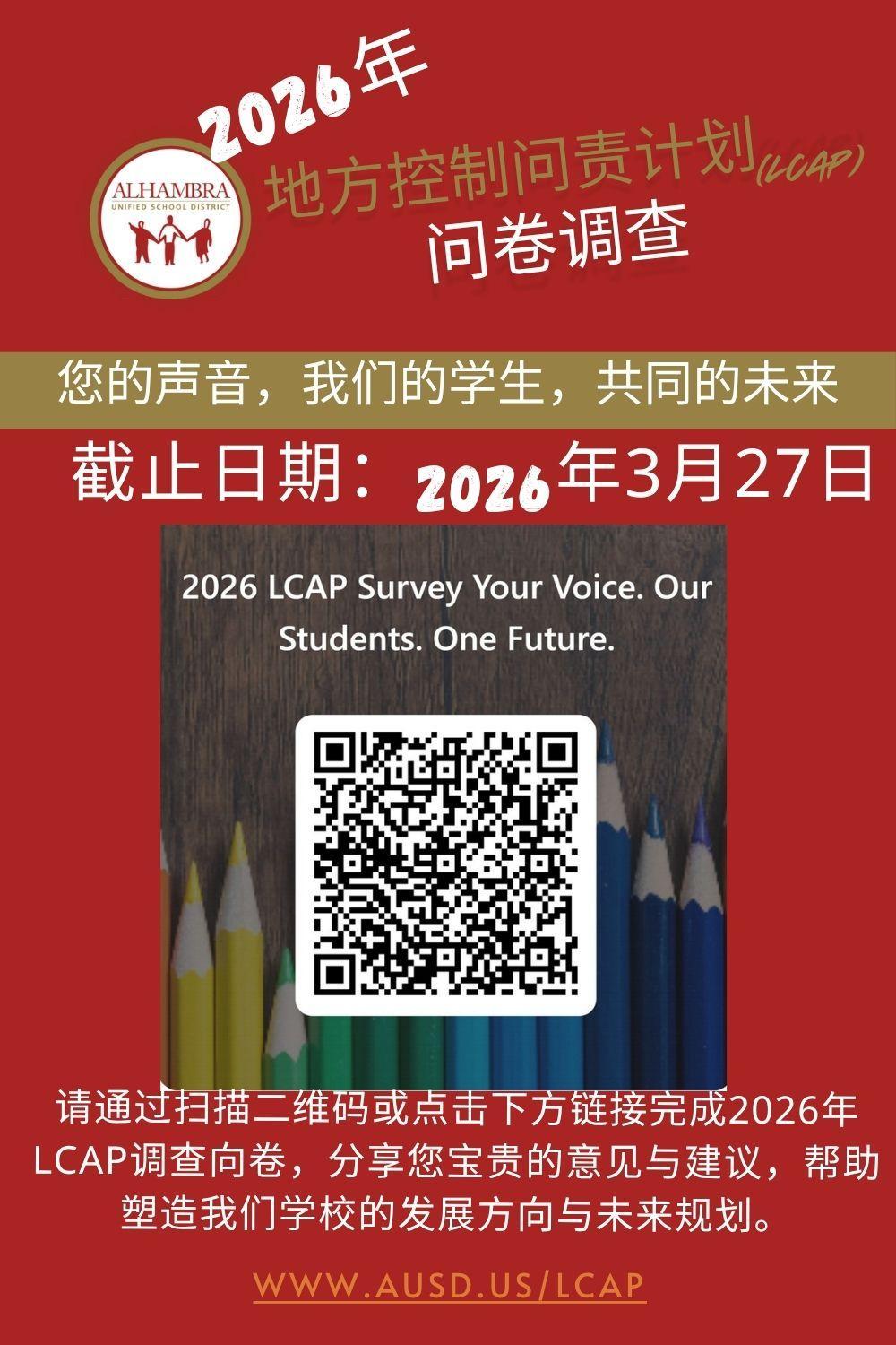 请填写2026年LCAP调查问卷,帮助我们塑造学校未来。